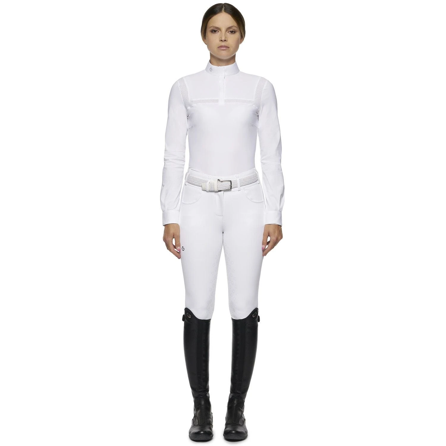 The Cavalleria Toscana women’s long-sleeved shirt with CT collar and perforated insert is made from breathable fabric and designed to perform comfortably in any arena.