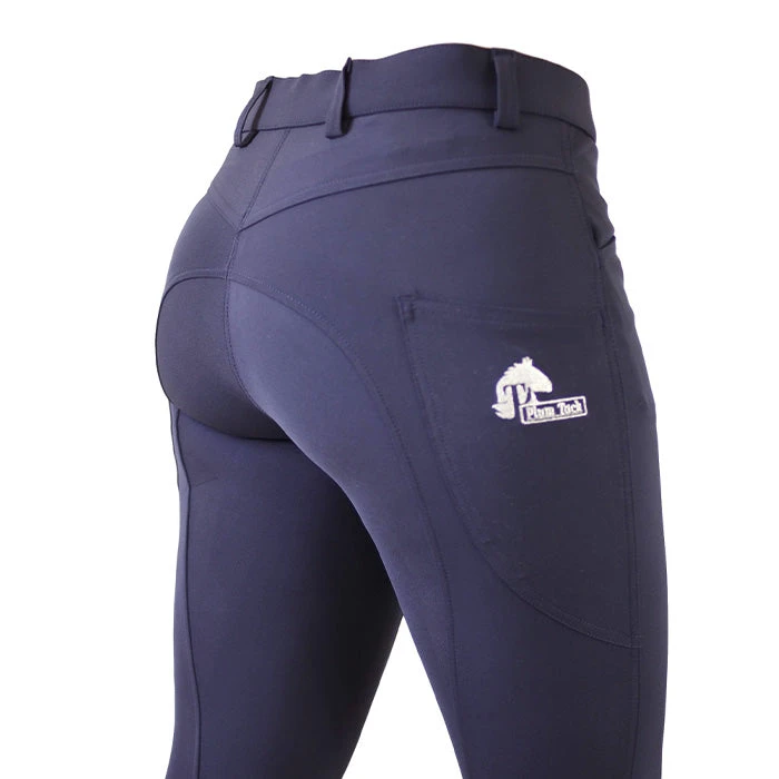 These beautiful Navy Breeches are perfect for warmer weather conditions. CoolMax fibres are breathable and moisture wicking keeping you cool, dry and comfortable. With nice deep front pockets and a phone pocket on each thigh that will take even the largest phone. These pockets allow you easy access to your phone when you need it while keeping it secure. You will never be short of pocket space, with room for your phone, keys, money for the instructor and maybe even a treat for your horse…