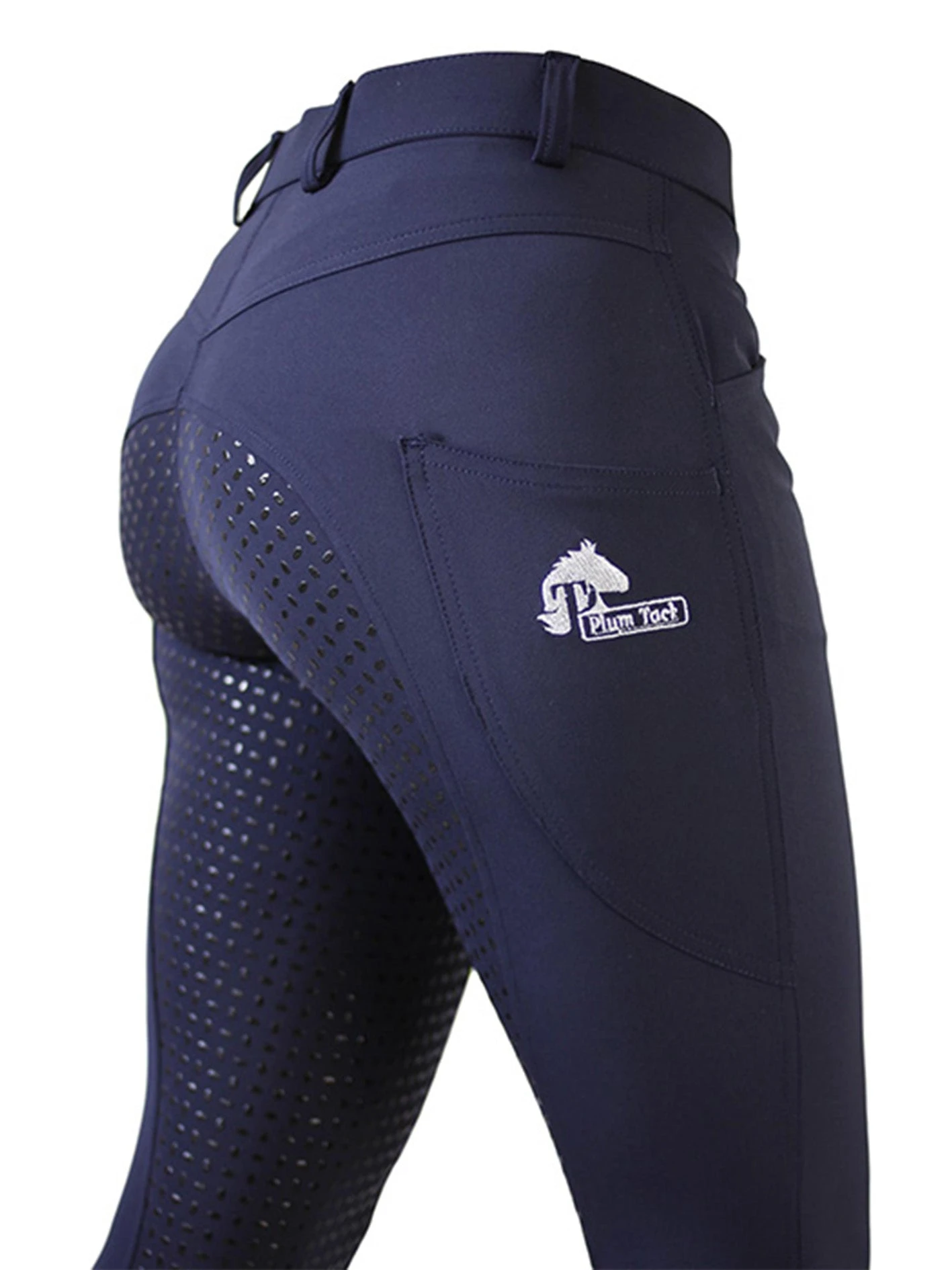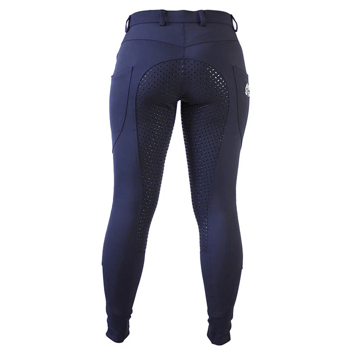Stylish and comfortable these Navy CoolMax Breeches will let you ride without the uncomfortable damp feeling, that Summer riding often brings. The fabric is soft, light, and durable. Four-way stretch allows them to move with you effortlessly. The silicone seat grip gives you extra security in the saddle, while still allowing you the movement you need. This is Sports comfort technology, in stylish and affordable breeches.Â