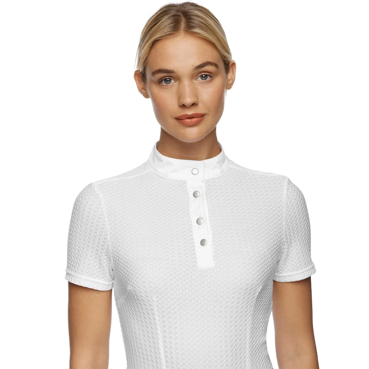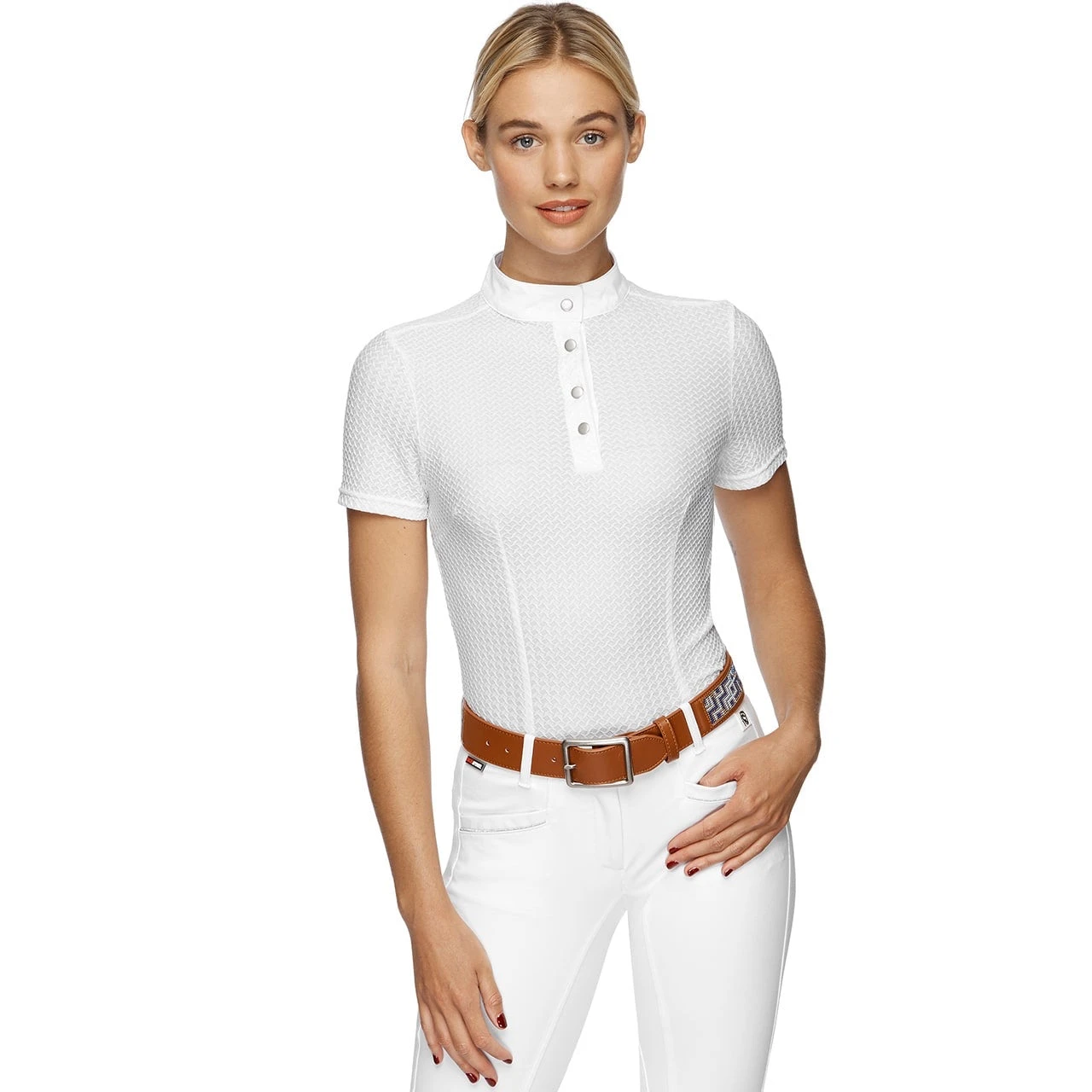 The Chiara is a sort sleeve summer competition shirt. Made from a light sports stretch fabric, this shirt is perfect for warm summer days in the show ring or at home.