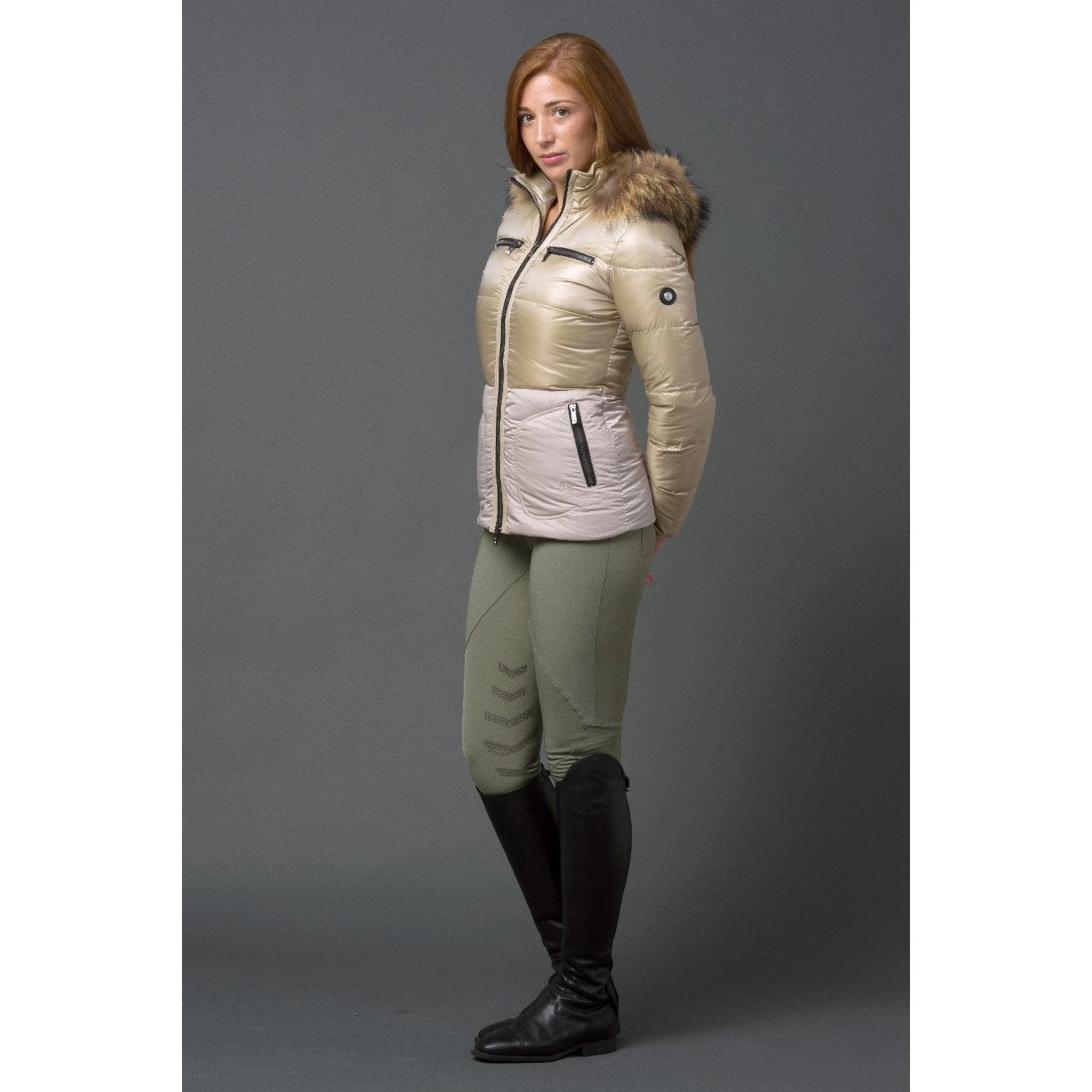 The Lucie, down filled for warmth without the weight. Featured in butter cream with contrasting details. Tailored at the waist, the flattering fit is enhanced by the snakeskin print which defines your waist and compliments your curves.